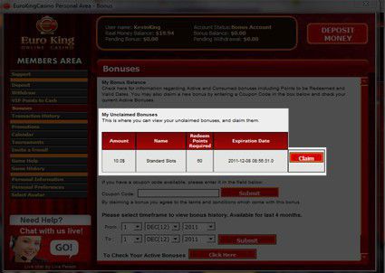 - Klicken Sie auf den Kasse Knopf und dann klicken Sie auf Bonus links im Menü im Mitglieder Bereich
