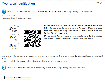 This page contains instructions for sending an SMS from your phone for Mobile/cell verification.
